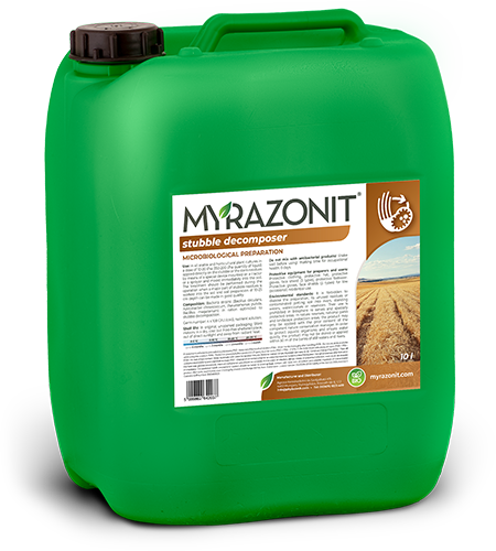 Dzięki preparatowi Myrazonit Rozkład Ścierniska N+ przyspieszamy i kontrolujemy rozkład martwych części roślin, przekształcając je w dostępne składniki pokarmowe. Zdecydowana większość tych substancji trafia do roślin i mikroorganizmów glebowych jeszcze w tym samym roku gospodarczym. W ten sposób pobudzamy życie mikrobiologiczne gleby, co z kolei pozytywnie wpływa na jej strukturę, próchnicotwórczość i podatność na uprawę.